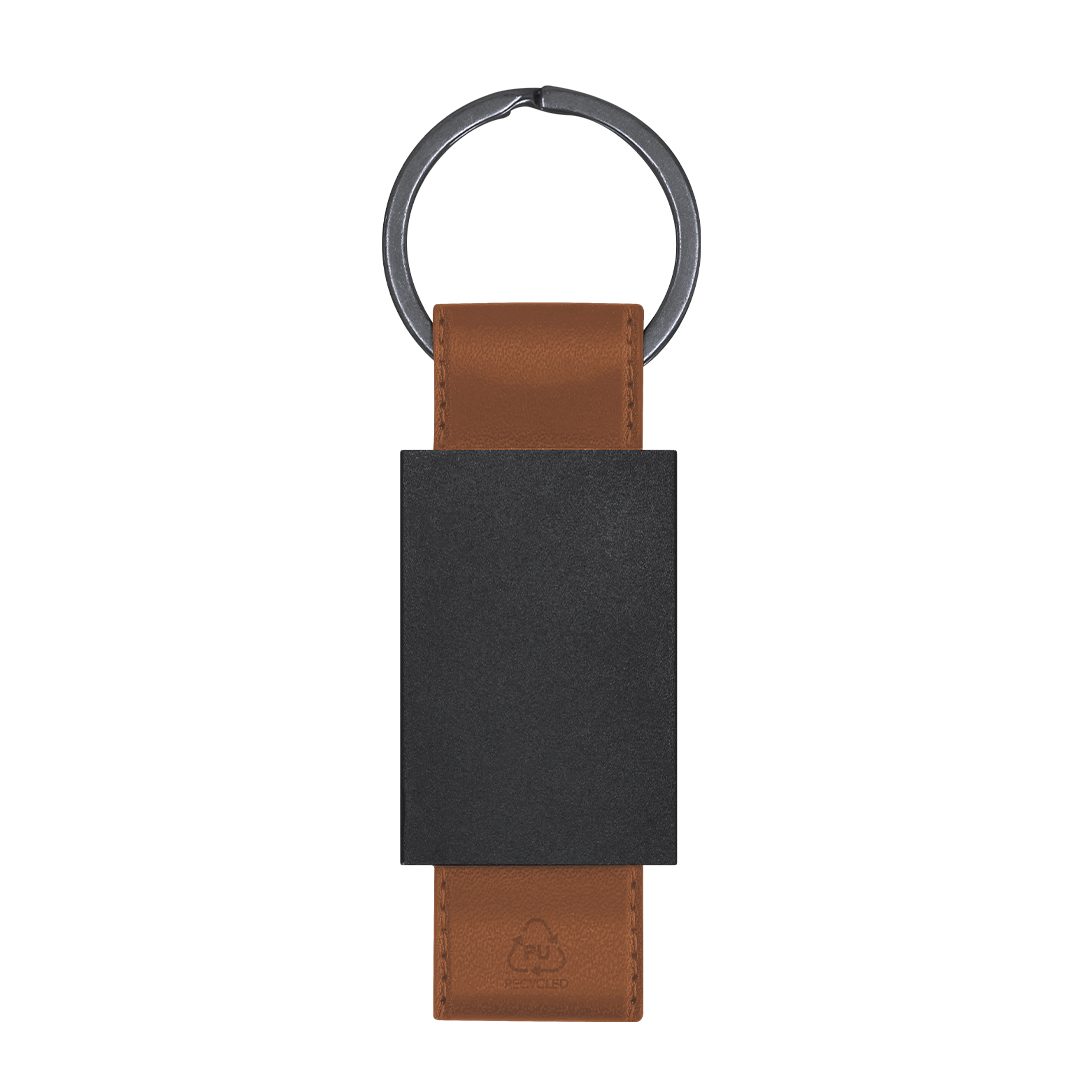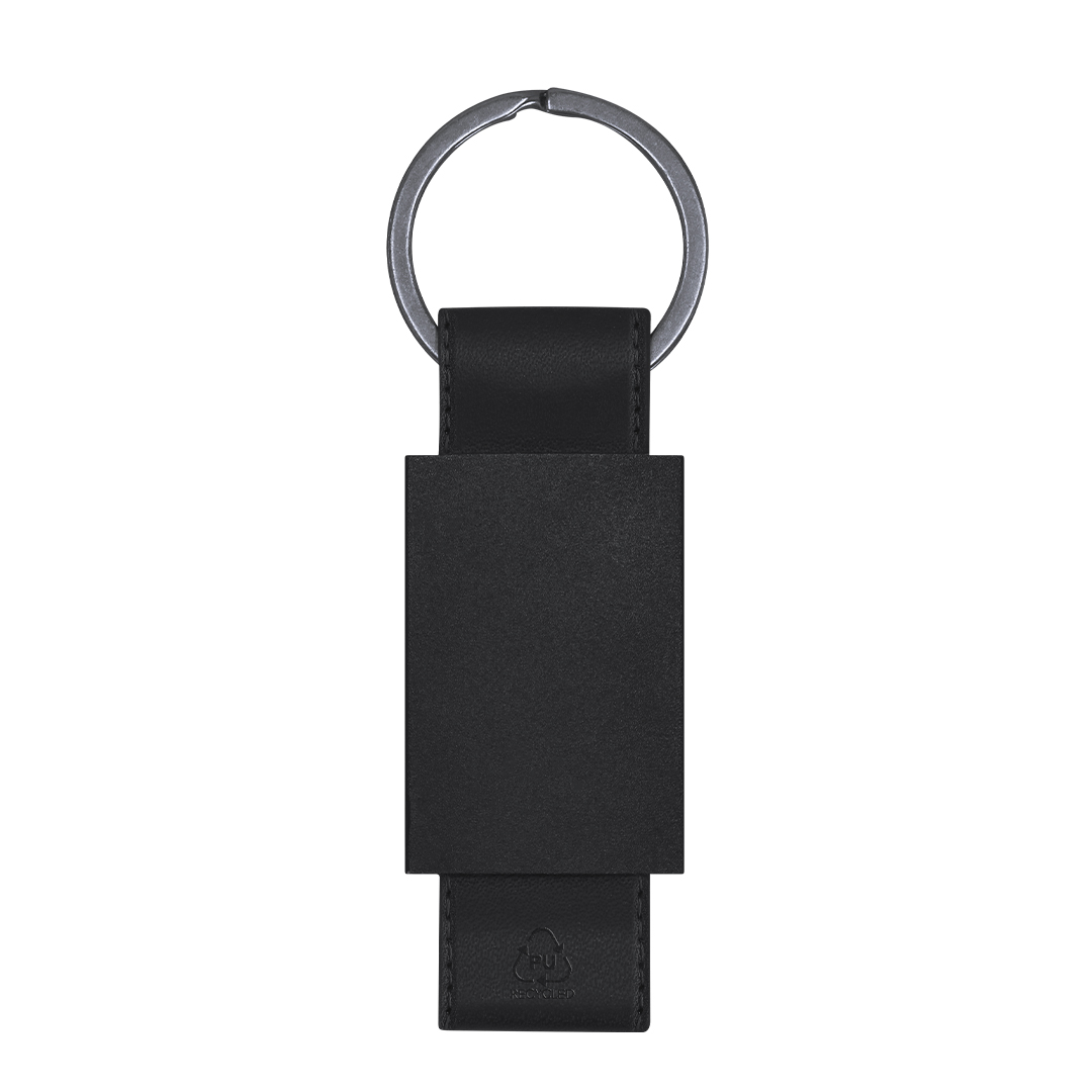 Clauer de divertit disseny amb cinta de PU reciclat. Amb cos negre en acabat mat.