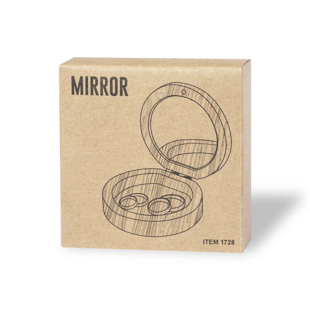 Joier de línia nature, amb carcassa fabricada amb bambú. Amb mirall interior 1X i tanca magnètica. Presentat en caixa individual de disseny kraft.