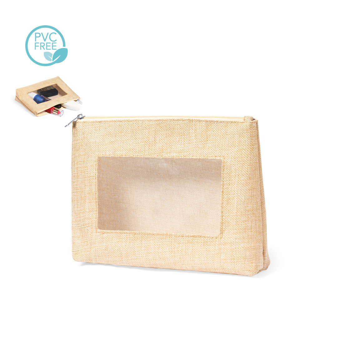 Necesser d'inspiració nature amb finestra a un costat. Amb tancament de cremallera a joc i acabat cosit. Fabricat en polièster de to cru, amb finestra a EVA transparent.