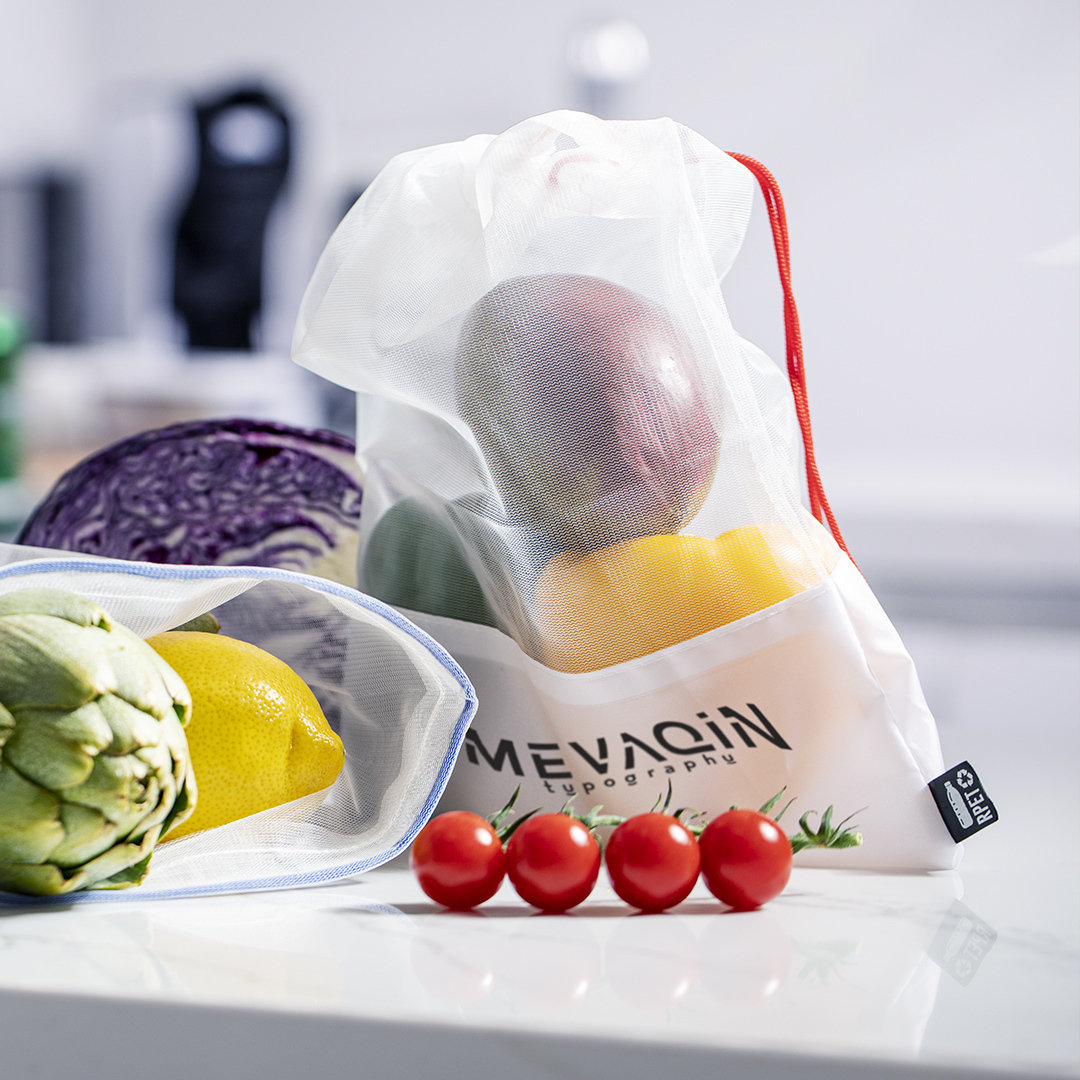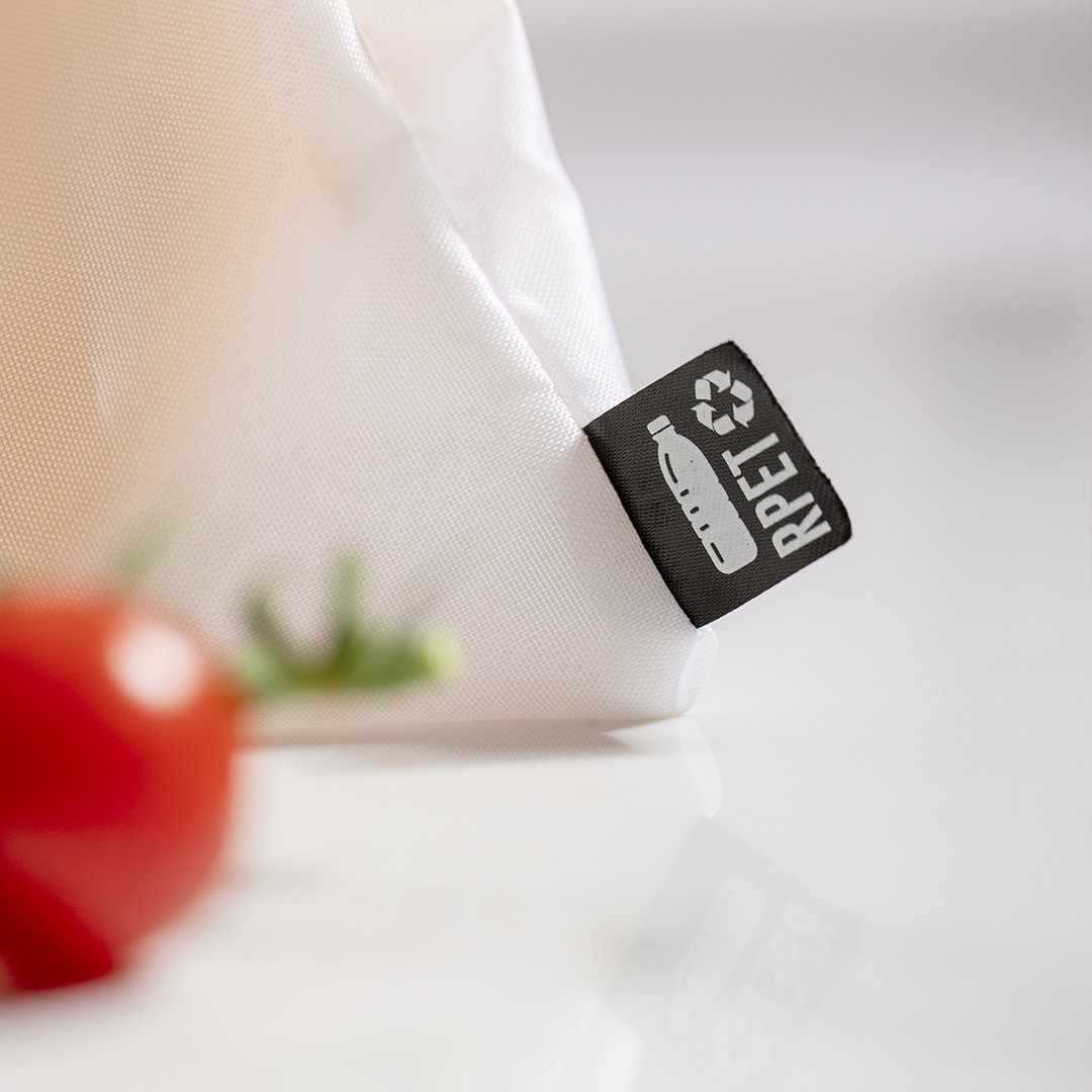 Inclou 3 peces de 25x30 cm amb tancament de cordó a color i distintiu RPET en etiqueta exterior. Amb àmplia zona de marcatge en les dues cares de les bosses.